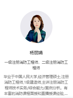 硕士、高级工程师,注册消防工程师,20余年消防设计、施工、项目管理经验,8年消防工程师授课经验。授课逻辑清晰,深入浅出、考点把握精准。